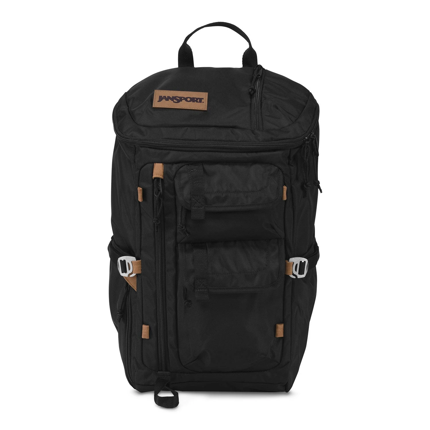 The 28L JanSport Watchtower backpack blends a rugged design with an arrangement of technical pockets and compartments. This durable pack is made from blended synthetic fabrics, features authentic leather trims, and is fixed with waxed cotton details. Its main top-entry compartment has inner pockets, which includes a padded sleeve designed to fit a 3L hydration sleeve or 15” laptop. The exterior of the pack is loaded with zippered pockets, including two front gear pockets, a stash pocket, a padded phone bladder, and an insulated zippered pocket to store food or drinks. The Watchtower comes with comfortable ergonomic s-curve shoulder straps that feature a sternum strap and has adjustable side compression webbing for a more streamlined shape. This 28L knapsack is the ideal companion on day hikes and for daily commutes where convenient storage is essential.