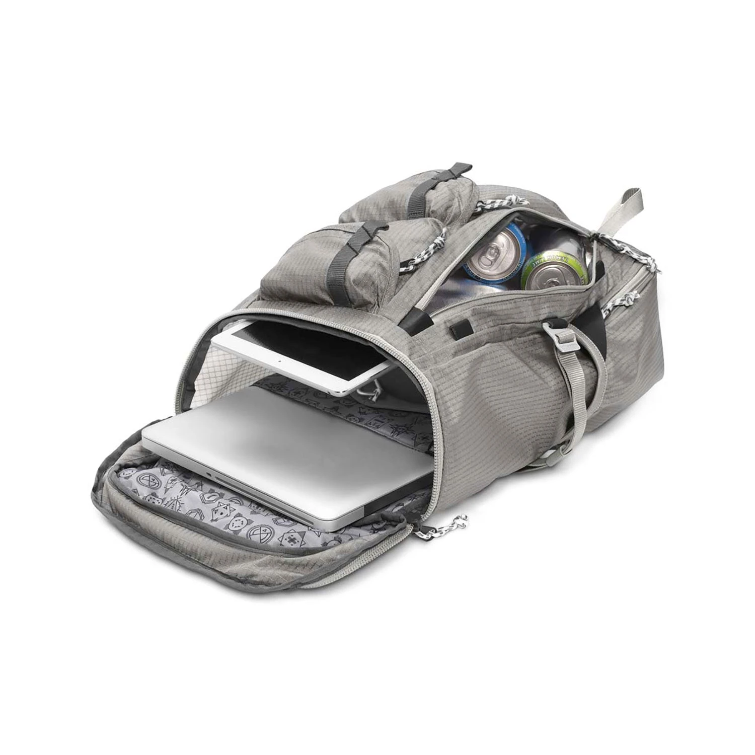 - Padded 15” laptop/hydration sleeve